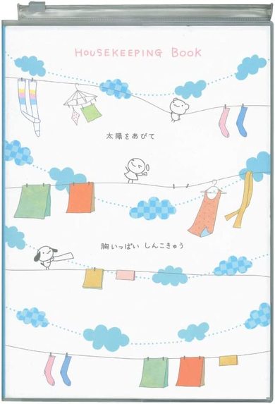 A5サイズ、42ページ。見開き1ページで、1カ月分として使用できます。シンプルなつくりなので、お金の流れが一目で把握できるのが魅力。裏表紙には、レシートなどを入れるクリアポケットが付いていて、レシートの整理もしやすいです。表紙のイラストもかわいいのでモチベーションを高めてくれます。