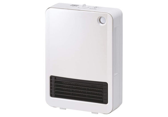 人感センサーを搭載し、人がいない間は運転を停止。消し忘れを防ぎ、節電にもつながります。本体サイズは約26(幅)×13.5(奥行き)×37.9(高さ)cm、重さ約2.5kgと、宅内で持ち運んで使いやすいコンパクト設計です。