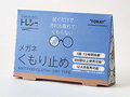 名古屋眼鏡の「TORELL 曇り止め強力ジェル」は、約40〜50回使用できるジェルタイプのアイテム。液をレンズに垂らした後、指で液を広げ、ティッシュで拭き取る形で使用します。