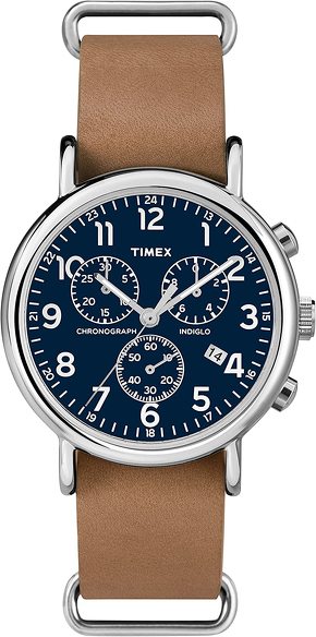 「TW2P62300」は、深みのあるネイビーの文字盤と、キャメルカラーのレザーベルトがクラシカルな印象を与えるクロノグラフモデル。ベーシックなデザインで、男女問わず着用しやすいです。視認性の高いインデックスを採用しており、瞬時に時刻を把握できます。