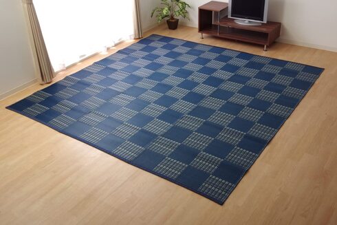 イケヒコ・コーポレーションの「ラグカーペット ウィード 江戸間2畳」は藍色の涼し気なデザインが特徴で、和モダンやアジアンテイストのインテリアにもよくなじみます。素材はポリプロピレンを使っているため、水や汚れにも強く、軽い汚れなら水拭きでOK。ひどく汚れたら丸洗いもできるので、いつも清潔に使いたい人におすすめです。