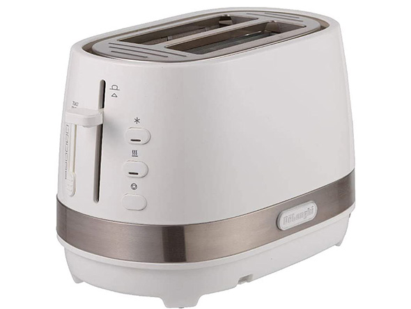 デロンギ「CTLA2003J-W」は、エスプレッソマシンで有名なデロンギが販売しているポップアップトースターです。6段階の焼き色調節と10〜5枚切りのパンに対応しています。解凍機能や温めなおし機能、掃除をしやすい引き出し型のパンくず受けトレーなど、ポップアップトースター選びのポイントをおさえた商品となっています。