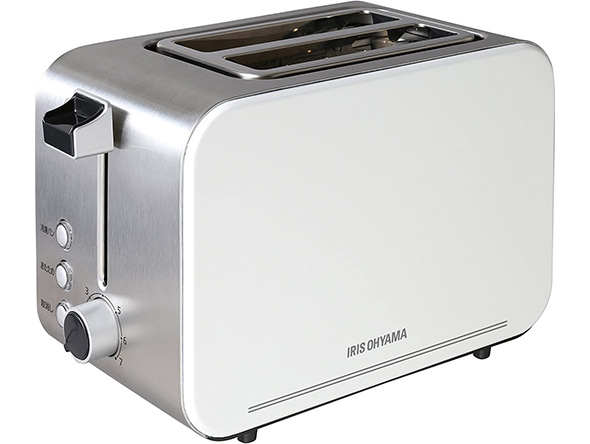 アイリスオーヤマの「IPT-850-W」は、7段階の焼き色調節と10〜4枚切りのパンに対応したモデルです。解凍機能や温めなおし機能、引き出し型のパンくず受けトレーなど、ポップアップトースターで重要な機能をしっかり搭載しています。