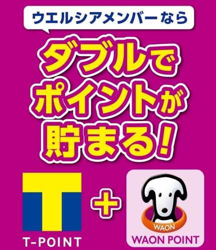 ウエルシアでの買い物では、ウエルシアメンバーになることで、TポイントとWAON POINTの両方をためることができます。両方のポイントカードを提示することで1%ずつ、合わせて2%のポイントがたまります。