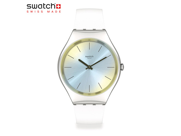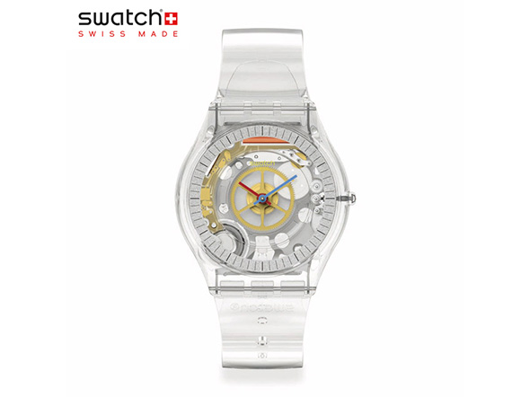 風防にはスウォッチ初となるバイオ由来素材のエッジトゥエッジガラスを採用し、新しい挑戦も忘れていません。