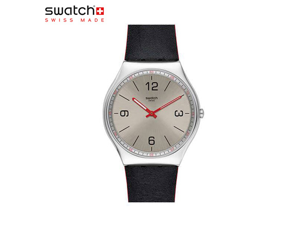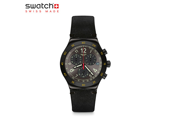 スウォッチとしては珍しいメタルケースとレザーバンドを採用したモデルです。