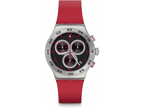 バンドにはマットレッドのラバーバンドを組み合わせてスポーティーなイメージを追求しています。