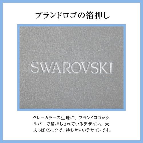 スワロフスキー・クリスタルだけではなく、シルバーで箔押しされたブロンドロゴや、スワロフスキーのアイコンである「スワン」が刻印されたタグも上品な印象です。