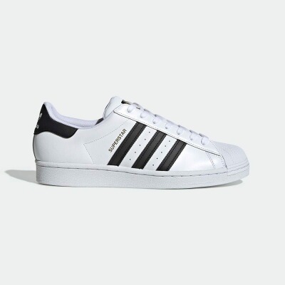 スーパースターはバスケットボールとして誕生し、その後ヒップホップやスケートボードなどストリートシーンのアイコンになりました。さまざまなコーディネートに合わせやすいブラックとホワイトのこのモデルは、タンのロゴにゴールドカラーを使った、いわゆる“金ベロ”もアクセントになっています。