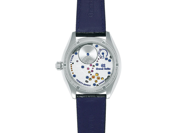 72時間パワーリザーブの手巻スプリングドライブキャリバー「9R31」を搭載。シースルーバックからは、自動巻きとはまた違った手巻きムーブメントならではのデザインを楽しめます。ヘアライン仕上げが施されたムーブメントは要チェックです。