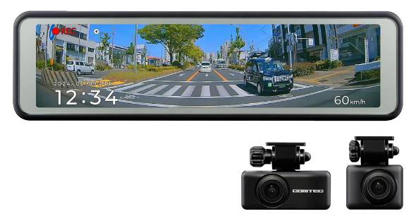 コムテックが12月8日に発売するルームミラー型ドラレコの最新モデル(オープン価格)です。