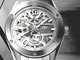 GMT用インデックスは大きなアラビア数字を採用し、GMT針も先端をビビッドカラーとすることで視認性を高めています。サファイアガラス風防の内側には拡大レンズを付け、日付が見やすくなっています。