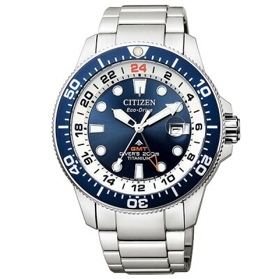 こちらもシチズン プロマスターのソーラーGMTダイバーズ。外装素材にシチズンが得意とするチタンを使い、軽量に仕上げています。