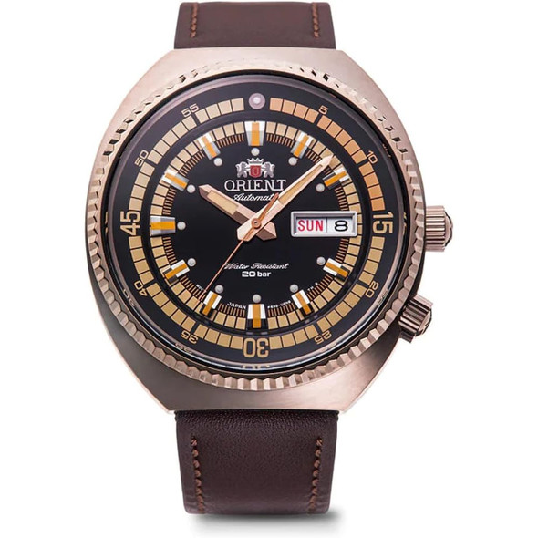 当時のオリエントを代表するモデルからインスピレーションを得ており、楕円形のケースや4時位置のりゅうずで回転できる内装回転リング、ブロックパターンの目盛りやファットな時分針などを踏襲。その上で20気圧防水や高精度に時を刻むメカニカルムーブメントなど、現代的な機能性を獲得しています。
