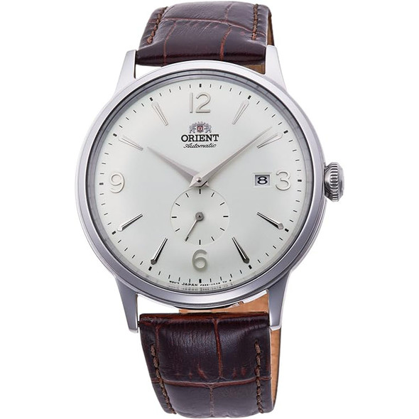 オリエントの人気シリーズ「バンビーノ」から、ボックスガラスや6時位置のスモールセコンド、りゅうず形状などがクラシックな雰囲気の「RN-AP0002S」です。