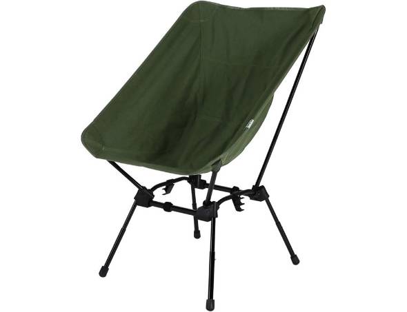 バケットチェアの人気モデルの1つ。4段階に高さが調整でき、グラウンドからハイスタイルまで対応できるのが支持されているポイントです。食事はハイスタイルで、焚き火はローやグラウンドでゆったりと過ごすといった使い方ができます。