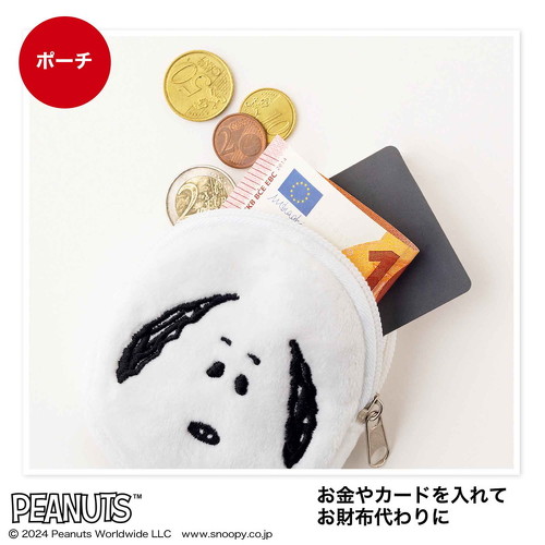 InRed4月号の付録に、スヌーピーの普段使いしやすいエコバッグと、スヌーピーの顔が刺しゅうされたふわふわチャームポーチが登場しました。チャームポーチにエコバッグをたたんで収納し、付属のカラビナで引っ掛けて持ち運ぶことができます。