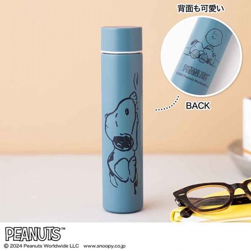 InRed4月号増刊の付録・スヌーピーのスリムな保温保冷ボトルも要チェックです。寝そべるスヌーピーが大きく描かれた、癒し効果のあるデザインが特徴。背面には、チャーリー・ブラウンの脚の上で眠るスヌーピーも描かれています。