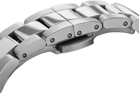 駆動部には、スイス製のクオーツムーブメントを搭載。風防(文字盤前面のガラス体)の素材には傷防止加工が施されたサファイアガラスを使用するなど、日常的な使用にも配慮された仕様となっています。スイス製ながら「値頃感」のある価格もうれしく、幅広い場面で愛用できる常用機だと言えるでしょう。ケースとブレスレットはステンレス製で、10気圧防水です。