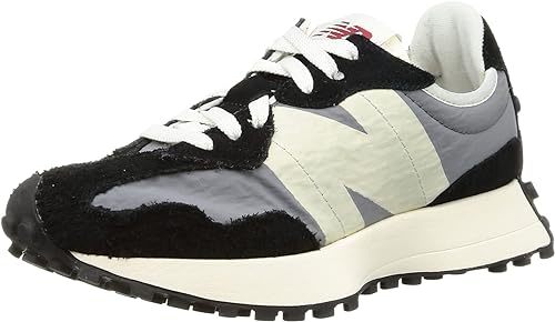 台形に広がったような形のソールが特徴的なニューバランスの「MS327」。他のモデルと比較してもソールに厚みがあり、厚さは約4.5cm。履くだけでグンと目線が上がり、身長も高く見えるはずです。