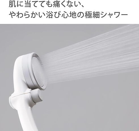 タカギの「キモチイイシャワピタT」は、約0.3mmの細い水流で、肌あたりが柔らかいのが特徴のシャワーヘッドです。極細穴のため、節水しながらも快適な水圧を保ちます。