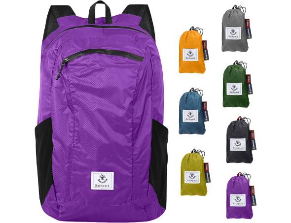 折りたたんでコンパクトに収納できるリュックです。容量16L、24L、32Lの3サイズがあり、それぞれ105g、115g、125gと軽量。収納時には16Lで13×7cmと、手のひらサイズに収まってしまいます。