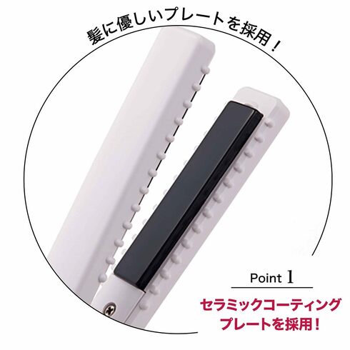 「コンパクトストレートヘアアイロン」は、140度・160度・180度の3段階で温度調節が可能。約15分で電源が自動オフになる安心設計付きです。