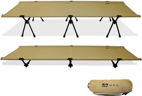 WAQ(ワック)の「2WAY キャンプ コット」は、快眠できるほど良い沈み込みが特徴です。ベッドシートには伸縮性と柔らかな肌触りが特徴の300Dナイロンを使っています。汚れが落ちやすく、雨天時の泥はねなどを気にせず使える点もうれしいポイントです。