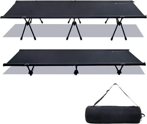 また、寝返りによるきしみの音を考慮し、生地とフレームの摩擦を極力減らすなど静音性にもこだわっています。総重量は約3kg(ハイスタイル時)と軽く、子供や女性でも比較的運びやすく、ファミリーキャンプにも使いやすいベッドです。