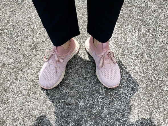 夏は、シューズの“蒸れ”が気になりますよね。スニーカーはサンダルとは異なり、足がほぼ覆われた状態になるので、熱が逃げにくくなってしまいます。その点、アスレシューズ ハイバウンスはアッパーがニット素材なので、通気性が高いと感じます。