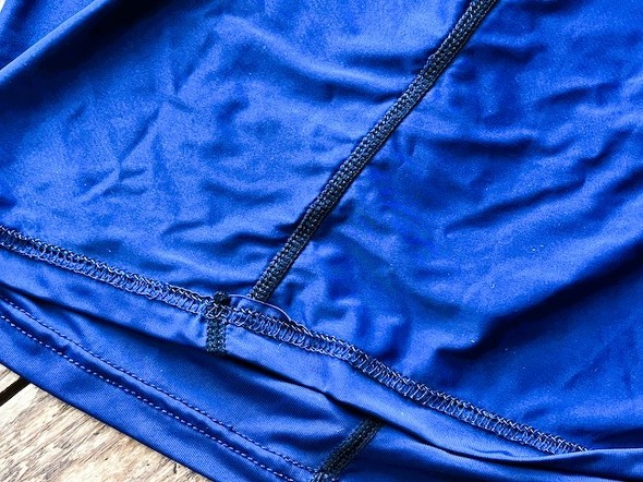 また、動きが激しいスポーツ時に着用しても、体の動きを妨げることはありませんでした。素材はナイロン90%、ポリウレタン10%で、水着のような素材感です。薄手で、非常に伸縮性が高いので動きやすいです。