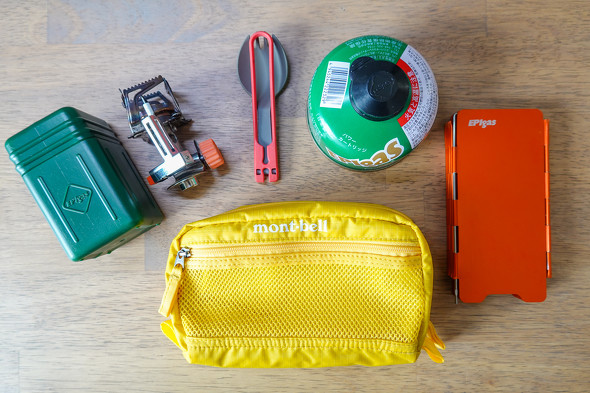 ちなみに、EPIgasの「QUO STOVE」と110サイズのOD缶を並べると、ライトポーチ Sの横幅にシンデレラフィットするので、持っている人はぜひお試しを。