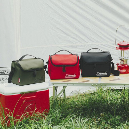 バッグ前面にはコールマンのロゴプリントがあしらわれ、コールマンレッドのネームタグがアクセントのおしゃれなバッグです。カラーはブラック、ディープレッド、モスグリーン、ネイビー、サンドベージュの5色展開です。