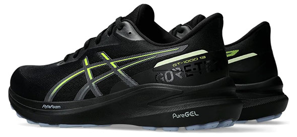 GT-1000 13ではサポート性とクッション性が高められ、ソフトな着地感と軽量化が実現されています。防水モデルはゴアテックスアッパーを採用し、雨などの浸入を防ぎつつ、通気性も確保しています。普段履きとしても安心して使えるシューズです。