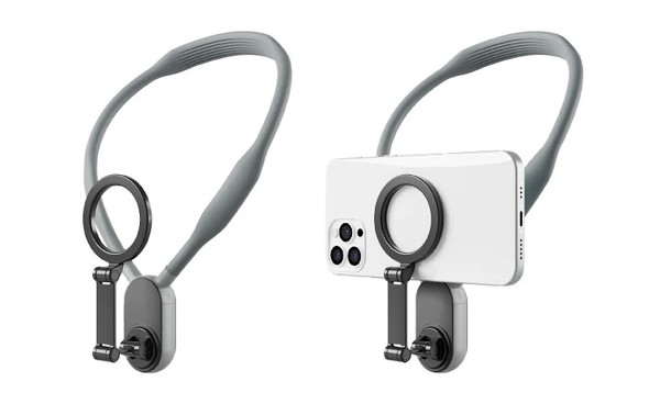 アーム部には3つの可動部が備わっており、首から掛けるだけでなく、デスク上でスマートフォンスタンドとしても活用可能です。もちろん“歩きながら”の使用は危険なので避けるべきですが、自宅のソファやトイレなど、日常でだらだらと動画コンテンツを楽しみたい人ならば、検討してみても良いかもしれません。販売価格は3980円(税込、以下同)です。