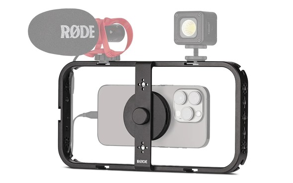 iPhoneで本格的な映像作品を撮影したいという人は、5月に発売されたオーストラリアのオーディオメーカー・RODE Microphones(ロードマイクロフォンズ)製の「Phone Cage(フォンケージ)」を要チェック。価格は2万4200円です。