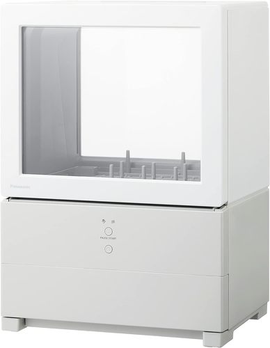 パナソニックの「食器洗い乾燥機 SOLOTA NP-TML1-W」は、A4サイズ程度のスペースに収まるコンパクトなボディで、置き場所に困らないのがポイント。1人暮らしにちょうど良いサイズで、一度に約6点の食器を洗浄・乾燥できます。高温の強力水流で洗うので汚れ落ちがよく、洗いながら除菌ができるのも魅力です。