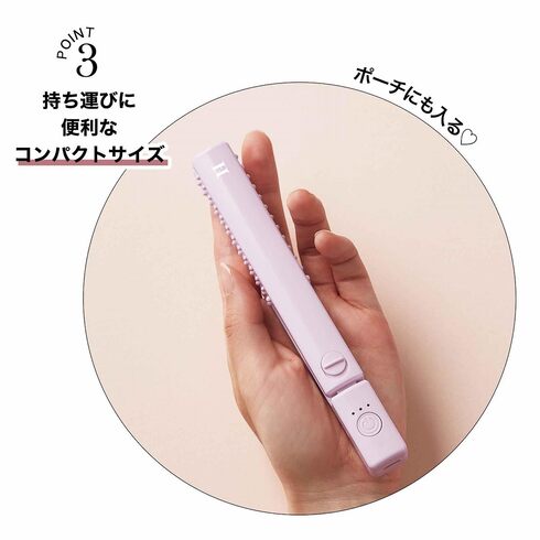 本体サイズは約15.6(長さ)×1.9(幅)×2.3(厚さ)cmとコンパクトで、ポーチにもすっぽりと収納可能。持ち運びにぴったりで、オフィスや旅行先でも簡単にスタイリングできます。