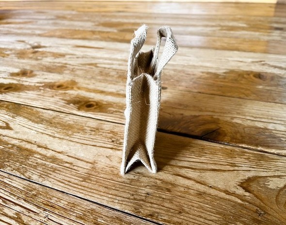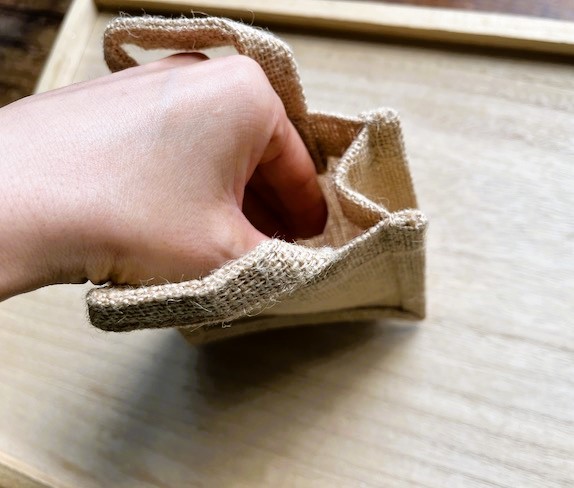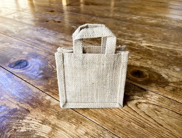 ジュート素材は硬さのある生地なので、ミニジュートバッグも生地が硬いことに加えて、バッグになっているのでたたみ癖が付いています。