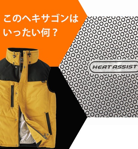 ワークマンの裏アルミプリントをよく見ると、六角形がびっしりと並んでいるのが分かります。これによりこもった熱を逃がすので、適度な暖かさを維持できます。