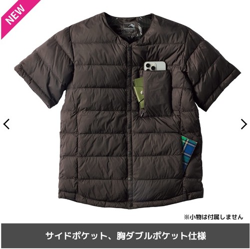 袖がないので、家事やデスクワークなどでも活躍します。また動きやすいので、アウトドアシーンの作業時にも着やすく、収納袋付きなので持ち歩きにも便利です。