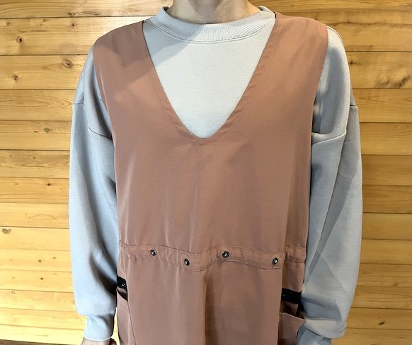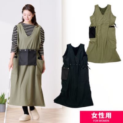 肩ひもが落ちないエプロンとしては他にも、首の部分が輪になっていて頭を通すものもありますが、それだと肩こりを感じるという問題もありました。“ちょうど良いエプロン”を選ぶのは意外と条件が多く難しかったのですが、結果的にホームギアドレスが全部解決してくれました。