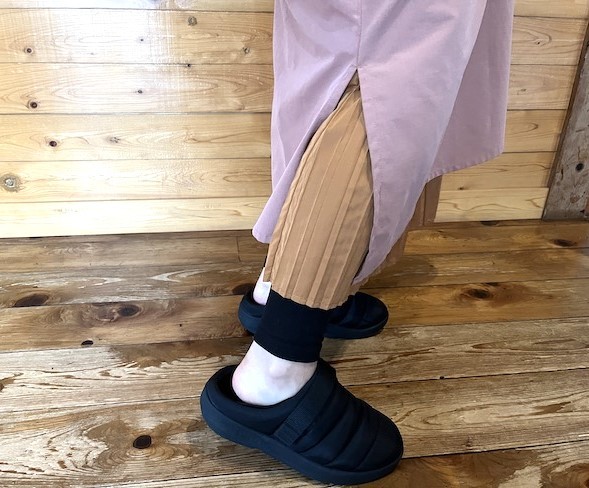 ロング丈というと歩きにくそうに感じるかもしれませんが、裾にスリットが入っているので足さばきもスムーズになります。
