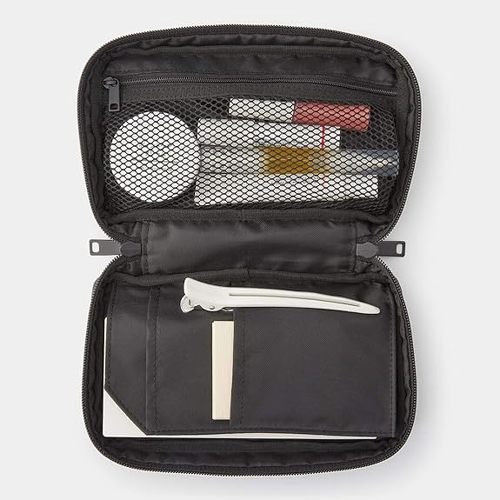 メッシュ収納部は見開き型で中が確認しやすく、メイン収納部はファスナーが半分しか開かない仕様のため、収納したものが落下しにくいのが特徴。サイズはS〜Lサイズを用意しており、Mサイズは約19(幅)×13.5(高さ)×3.5(奥行き)cmです。