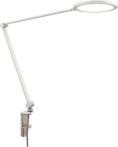 オーム電機の「オーム電機 LEDアームライト」は、デスクの端に挟んで使うクランプタイプのLEDデスクライト。可動式の長いアームと、円形状の照明カバーで広い範囲を照らします。