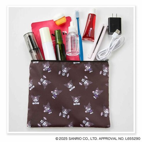 総柄ポーチは約24.5(幅)×19.5(高さ)cmの大きめサイズ。さまざまなポーズのクロミが散りばめられたデザインです。中身がたっぷり入るので、通学・通勤のお供にもぴったり。荷物が多いときのバッグインバッグとしても活躍してくれます。