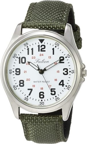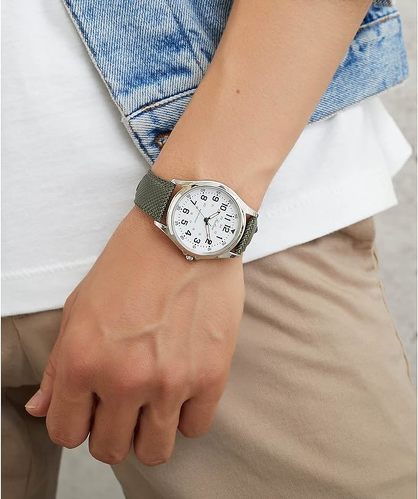 カーキ色のバンドにホワイトの文字盤、視認性の高いアラビア数字のインデックスを組み合わせています。ケース径は約38.5mm。実売価格は1500円前後からとコスパに優れ、日常生活防水も備えているので、気兼ねのない日常使いに活躍してくれそうなウォッチです。