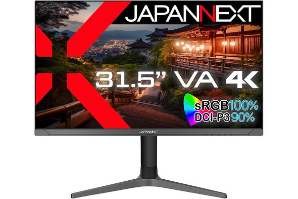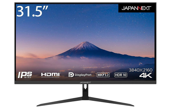 最終的に選んだのは、JAPANNEXTの「JN-IPS315UHDR」となりました。31.5インチのIPS系パネルを採用、4K解像度、HDRに対応したモデルです。350cd/m2(カンデラ毎平方メートル)の高輝度、広視野角のIPS系パネルを採用し、どの角度から見ても色やコントラストの変化が起きにくく、鮮明な画像を映し出す、とされています。