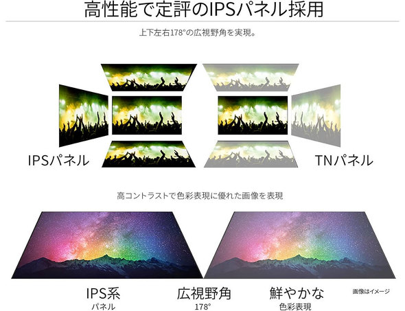 しかしながらこちらのモデルはAmazon限定。予算の限られている状況ですので、たまっているヨドバシのポイントを使いたいところです。また、パネルの種類がこれまで使用していたものと同じVAでしたので、できればIPSのモデルにしたいとも考え、こちらはスルーしました。とはいえ、なんといっても価格が魅力的なモデルなので、状況が違っていればこちらを選んだかもしれません。