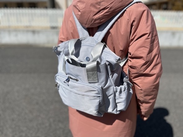 2WAYトートリュックは3900円(税込み)です。カラーはブラック、カーキ、シルバーグレー(筆者購入)、アイボリーをラインアップしています。在庫状況は店舗によって異なるので、オンラインで在庫状況をあらかじめ確認しておくことをおすすめします。